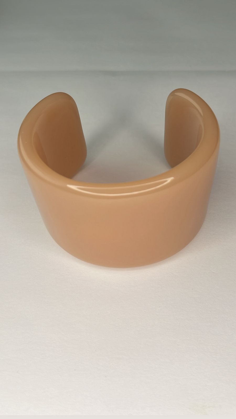 Bracelete em resina com acabamento liso e brilho sutil, no tom rosê. O design clean e estruturado traz elegância e versatilidade, ideal para compor looks modernos e sofisticados. Uma peça coringa que combina com diversos estilos e ocasiões.